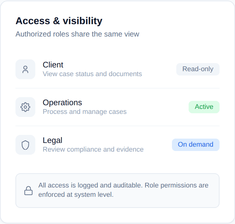 All stakeholders see the same status. Progress, outcomes, and next steps are visible without manual updates.